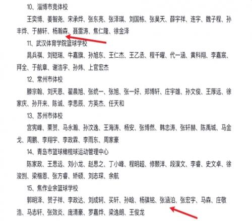 其中,焦作業(yè)余籃校名單中,張涵泊赫然在列,而淄博市競體校中,楊瀚森的名字更是引人注目。