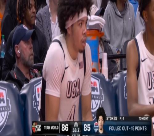 本場比賽,明年狀元熱門、美國隊球員泰蘭·斯托克斯出場25分鐘11投6中,三分1中0、罰球4中3貢獻15分2籃板2搶斷,犯滿離場。